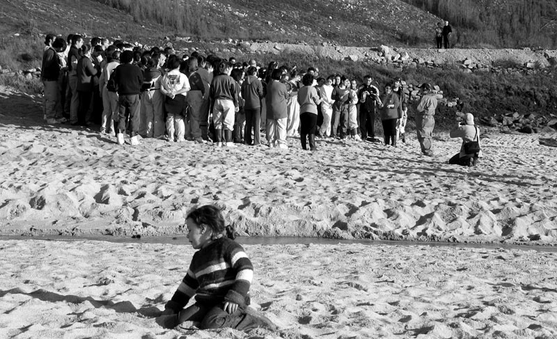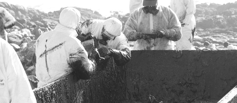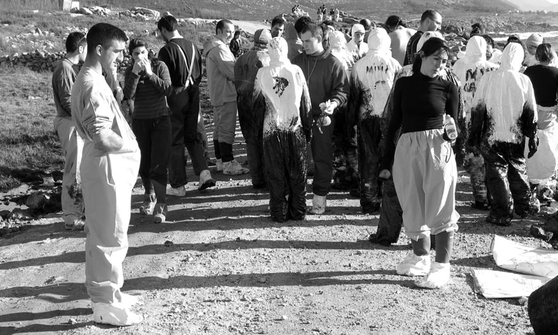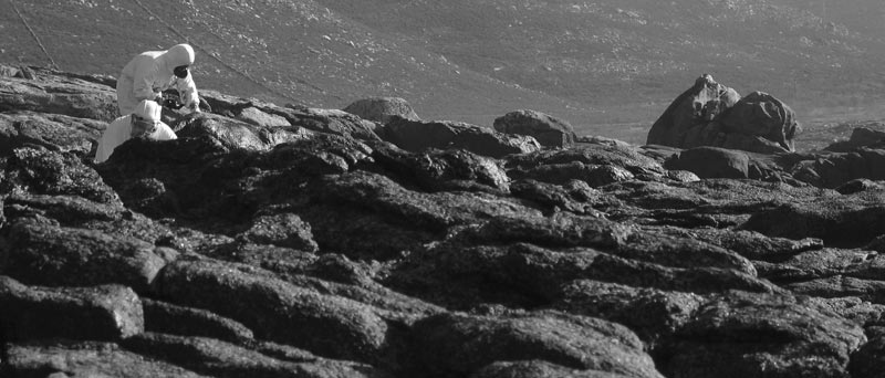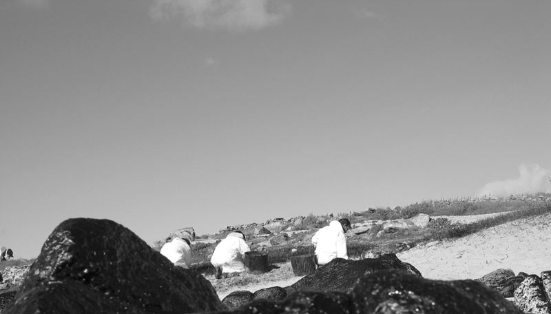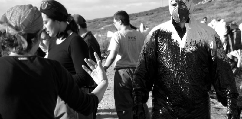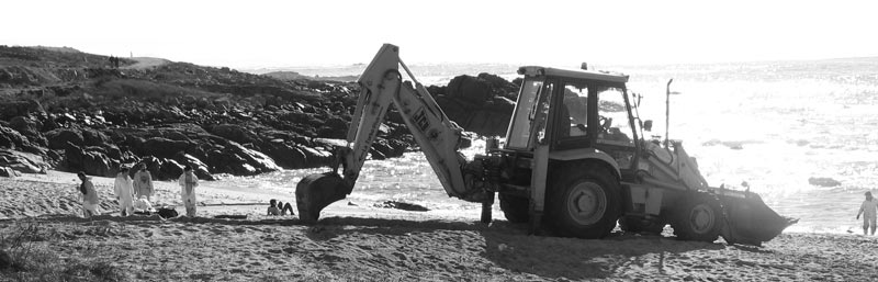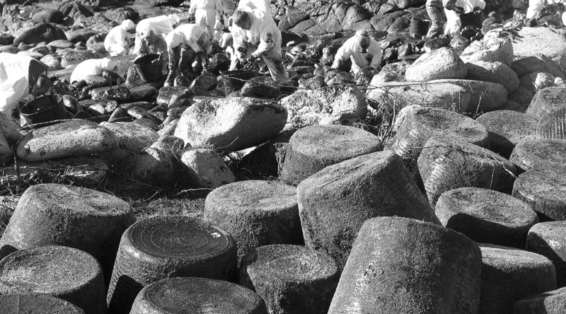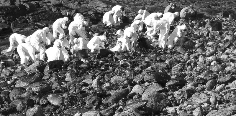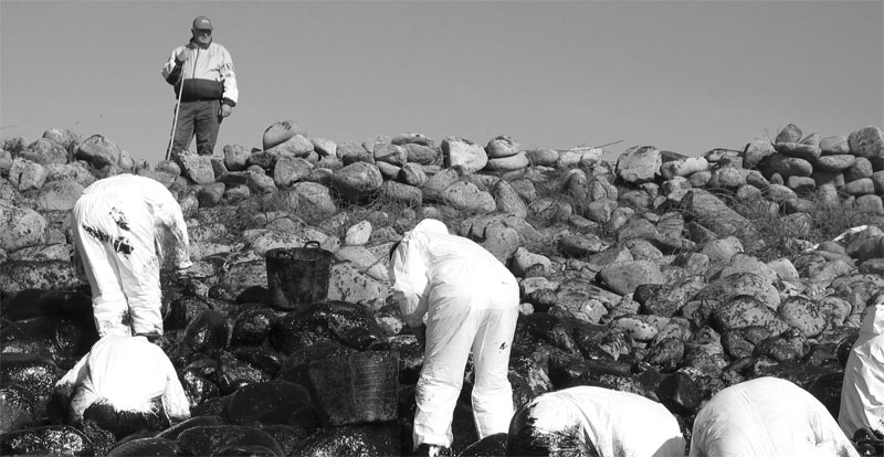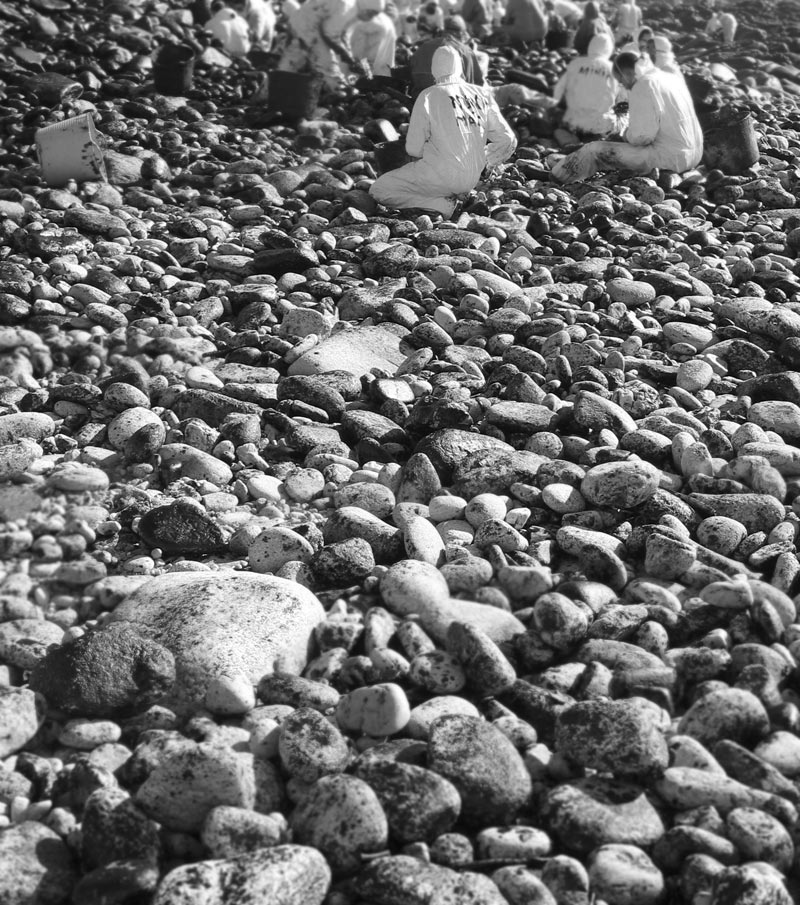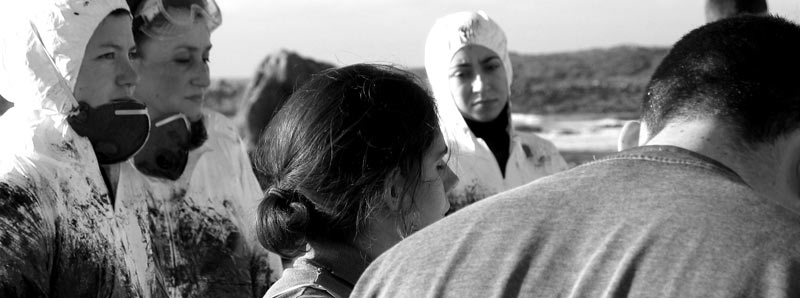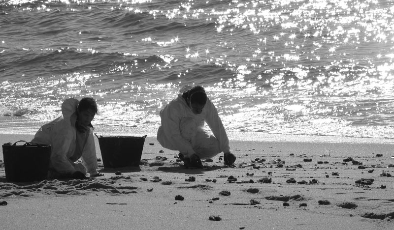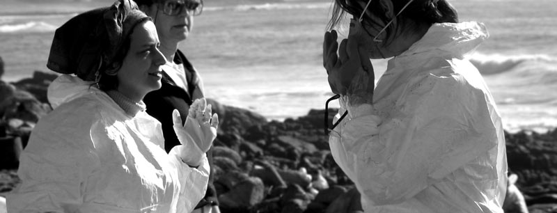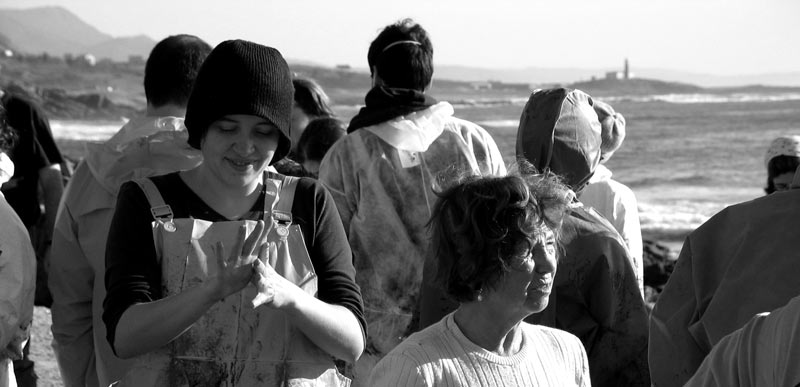 encargo del grupo de música folk gallego Leilía en enero de 2003, en homenaje a todos aquellos/as que voluntariamente limpiaron playas en Galicia después de la desgracia de sufrir la marea negra del Prestige (y de comprobar quién nos gobierna). Fotos por Telémaco.